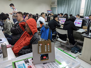 現場多位講師級助教、許多microbit應用作品、教案專書、哈士奇AI鏡頭(v2研究中)、和esp32晶片教具如程小奔、cyber pi、wifi boy、esp32cam